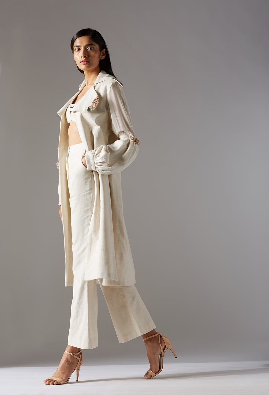 Enchanted Forest Over Coat With Bralet And Khadi Pants