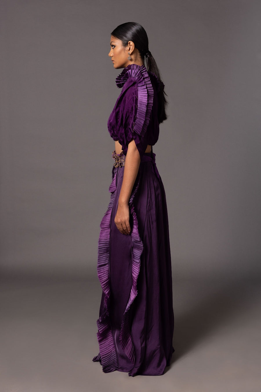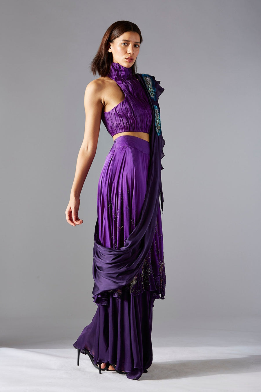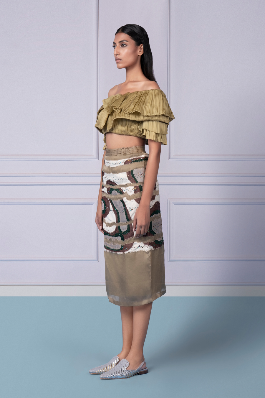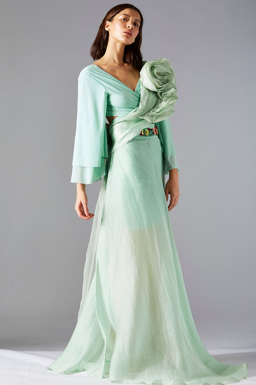 Rouching Crop Top With Day & Night Layer skirt and Stole