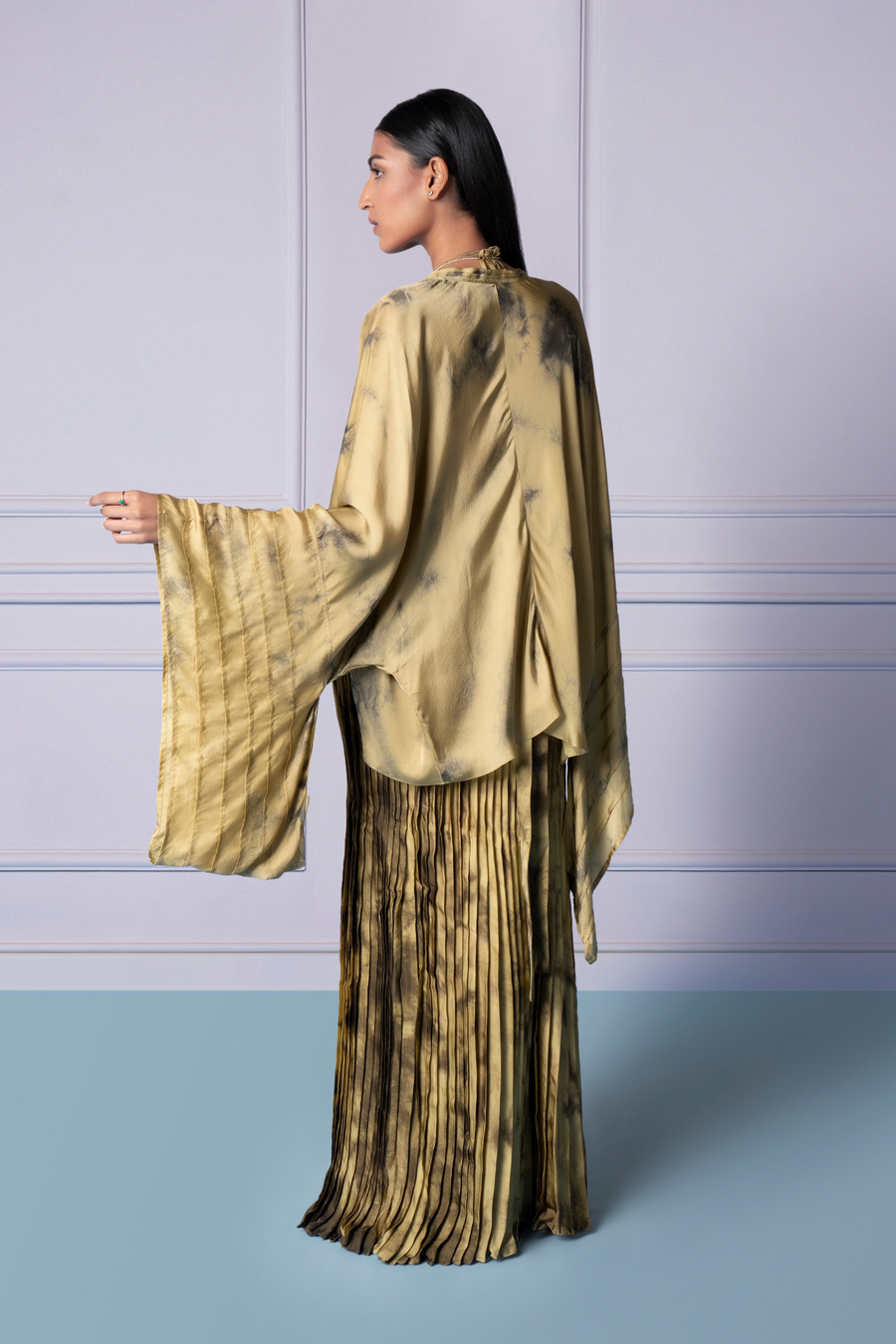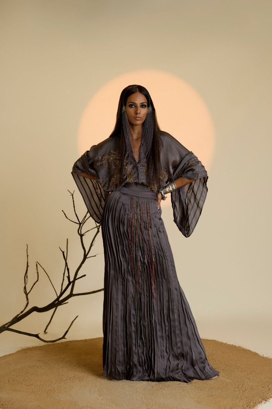 Shikhar Baugh Charcoal Kimono Top & Gucha Pleated Skirt Set