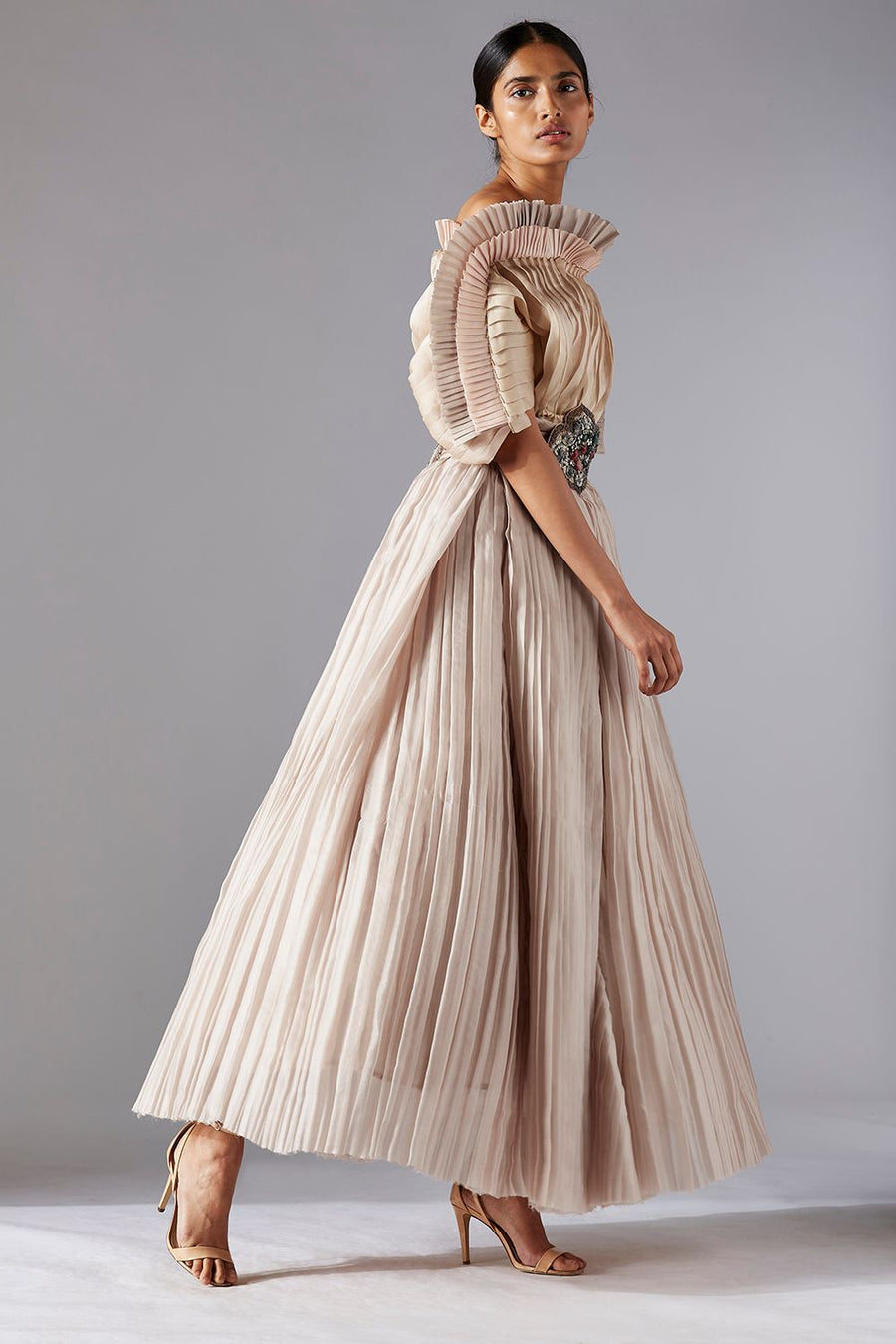 Shikhar Baugh Charcoal Jacket And Gucha Pleated Skirt Set