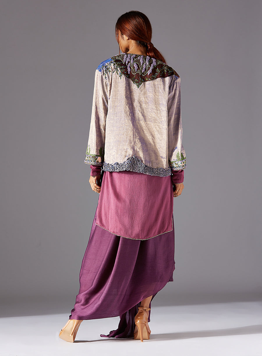 Elysian Iris Jacket with Tree Bark Kurta and Lungi Dhoti