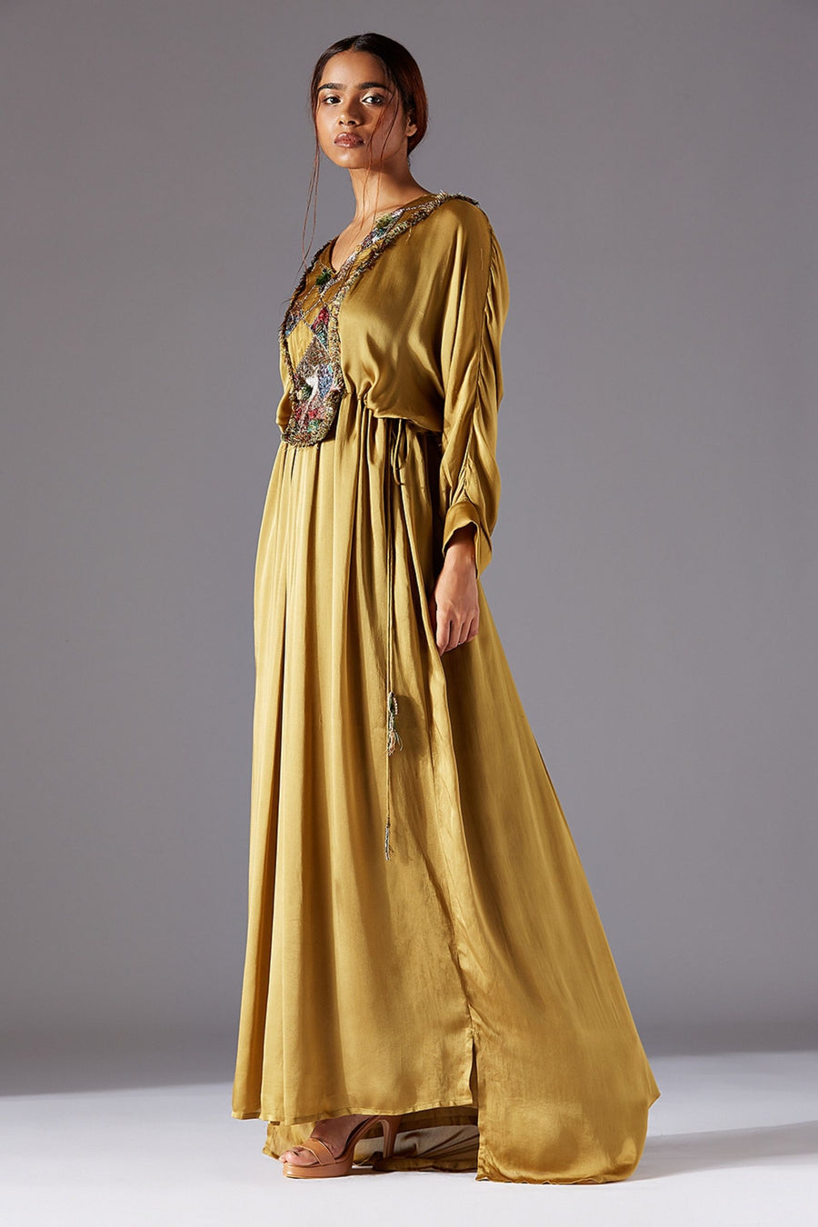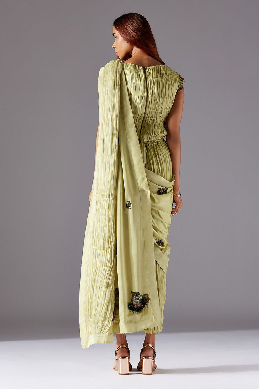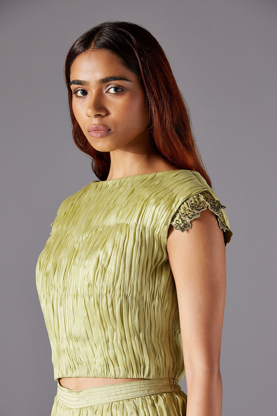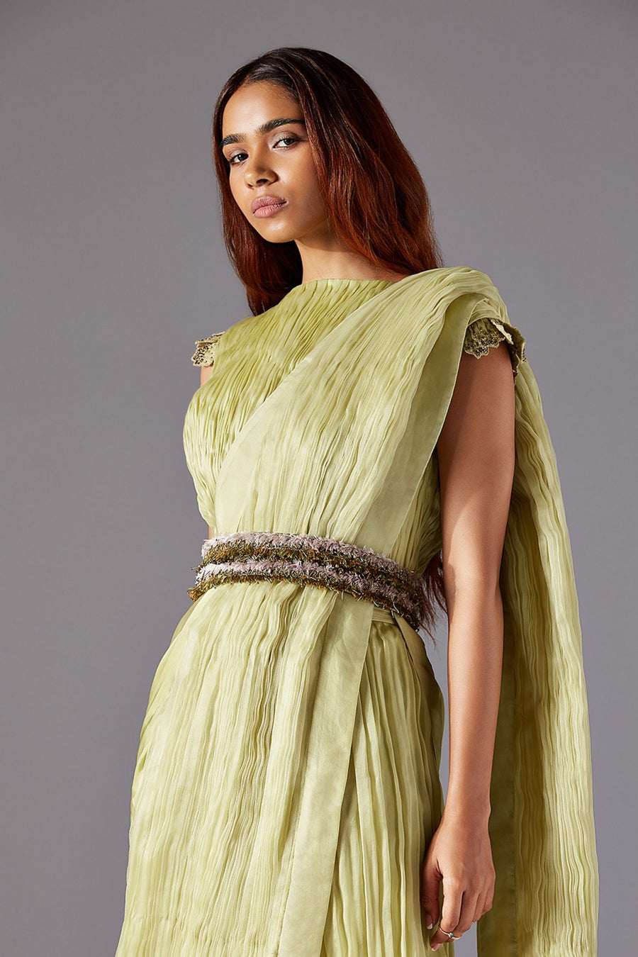Machair Ruching Top with Machair Ruching Pants, Machair Dupatta and Grass Belt