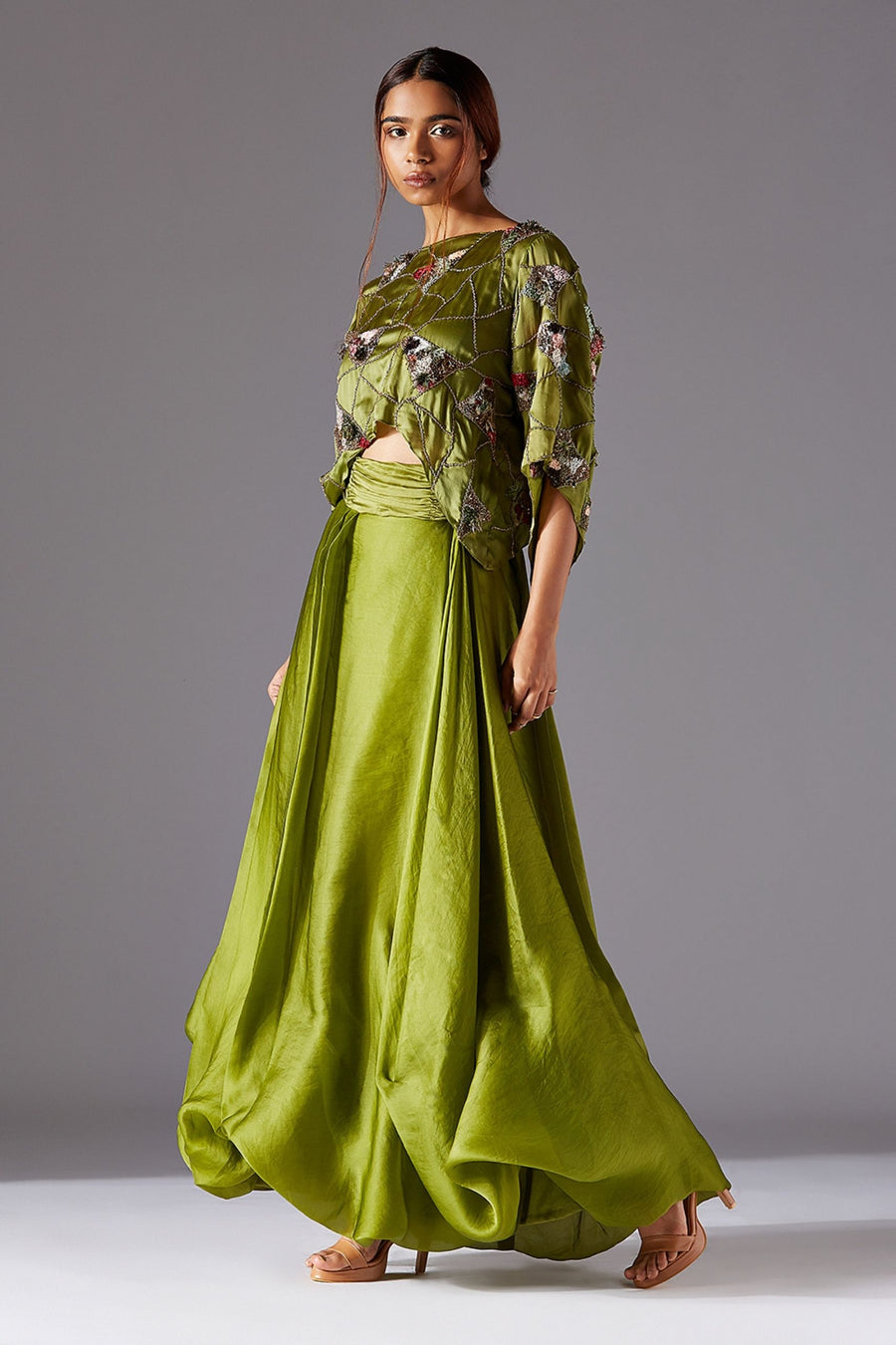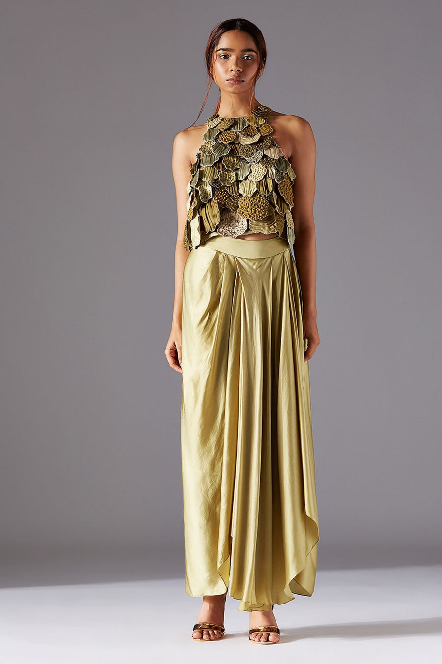 Mima Mounds Top With Draped Dhoti Skirt