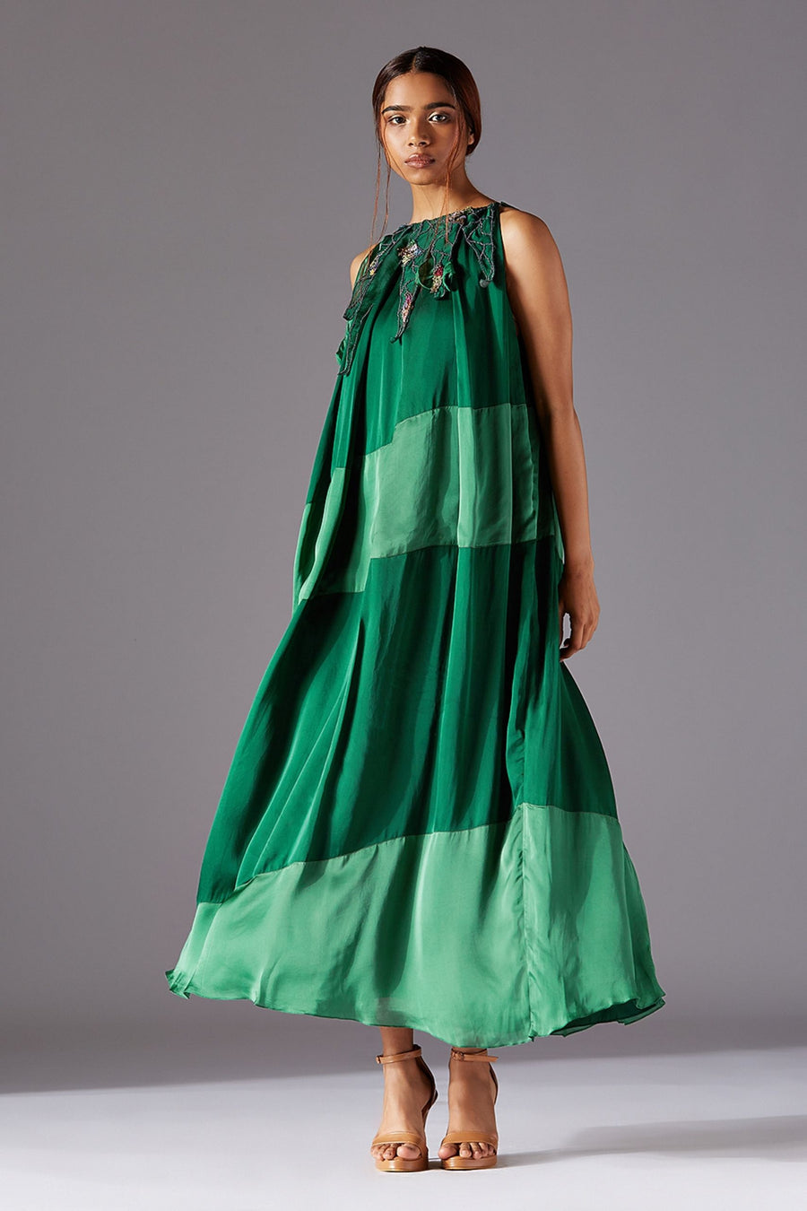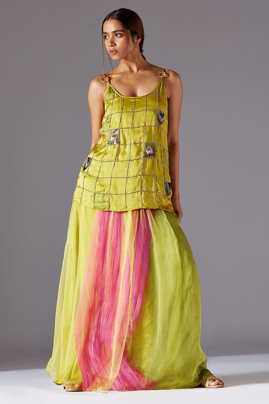 Machair Spaghetti Top With Colorblocked Organza Skirt