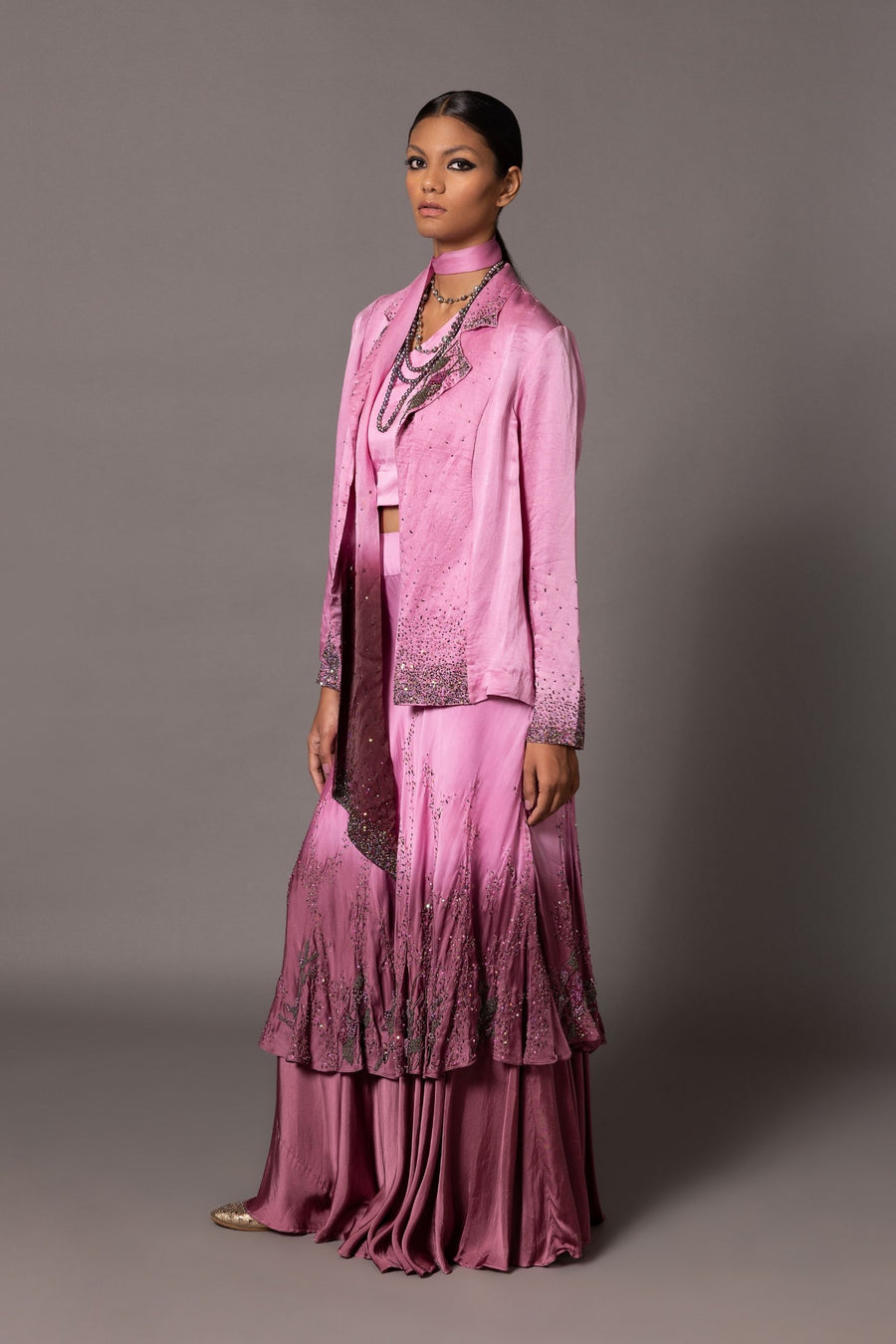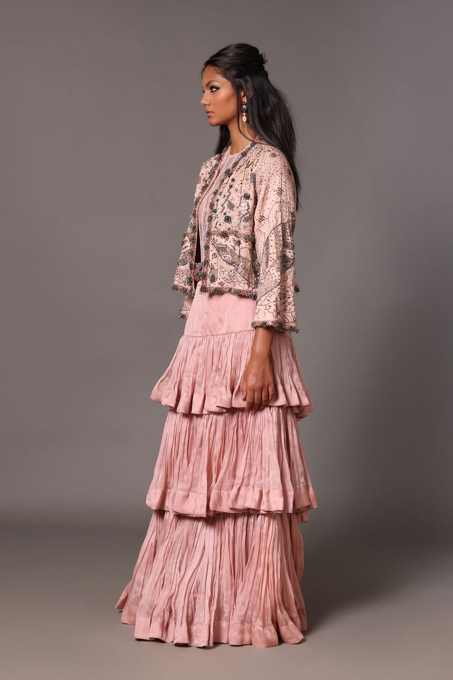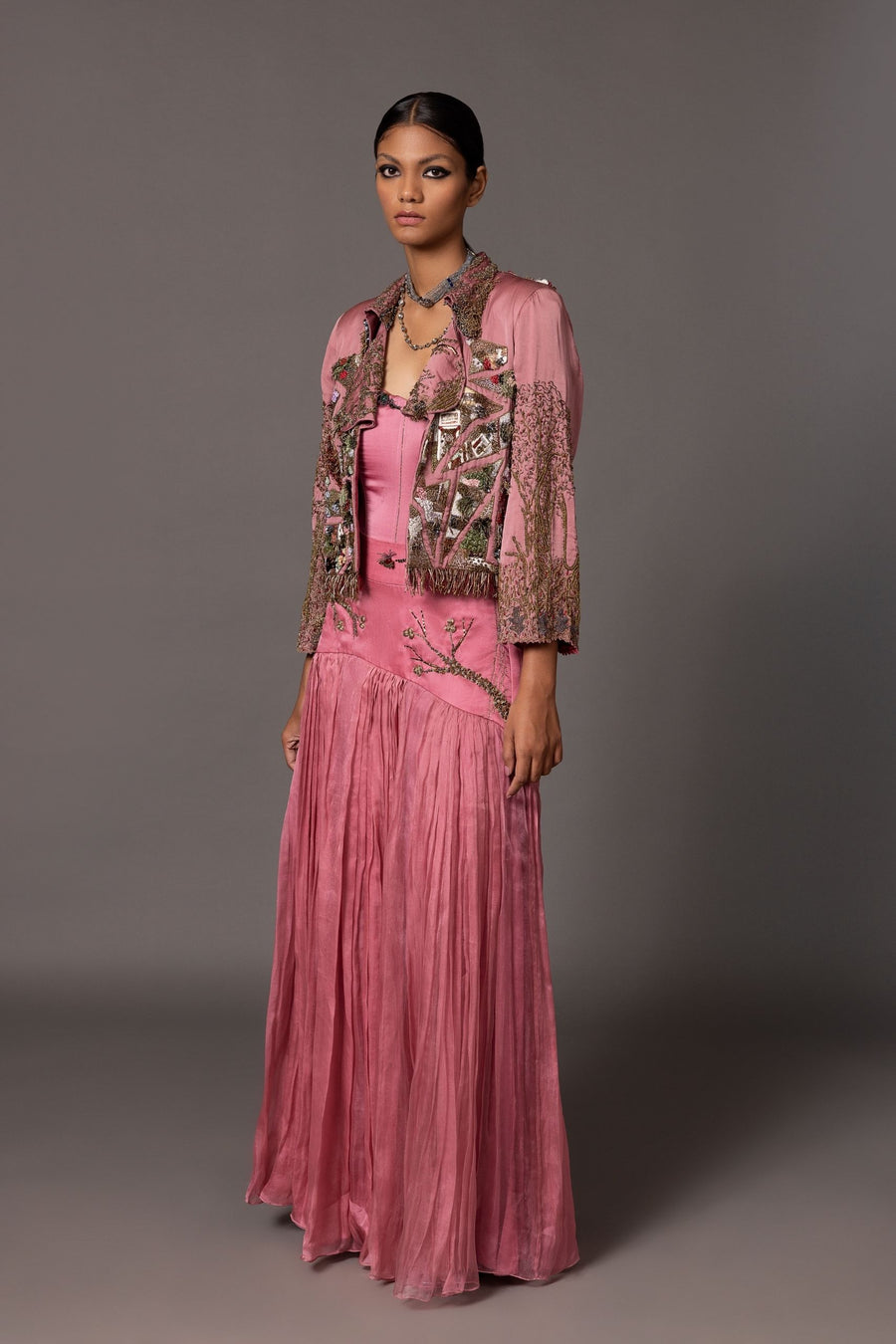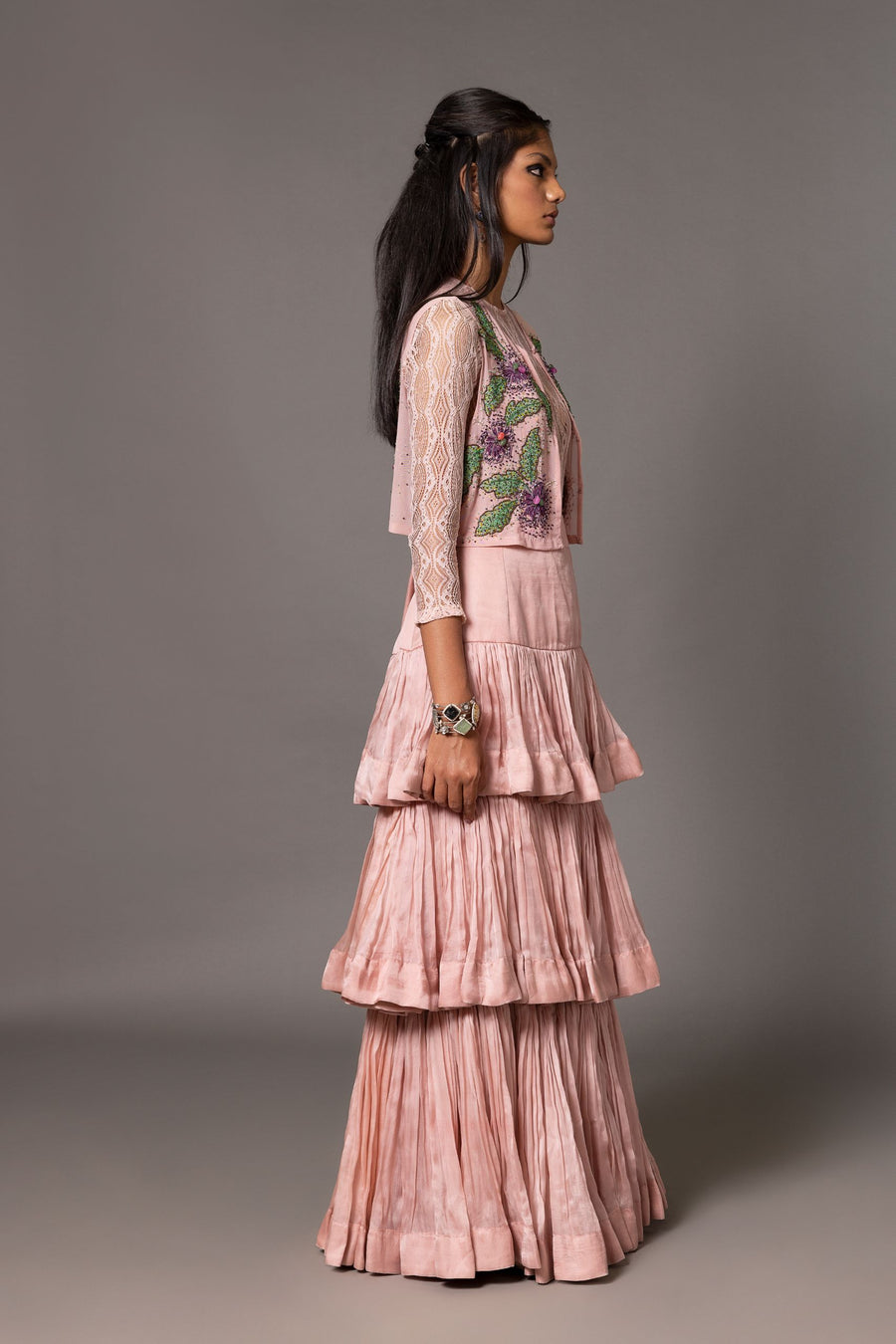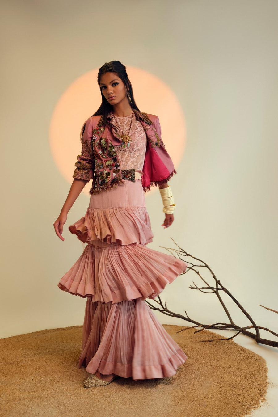 Dusty Pink Earth Jacket ,Lace Leotard and Chand Baori Skirt Set