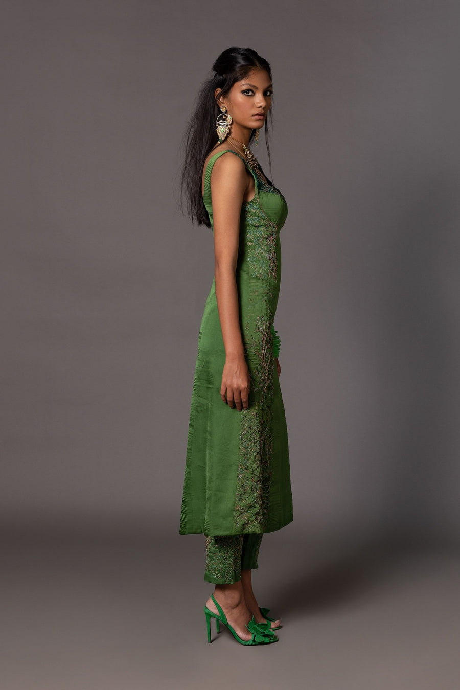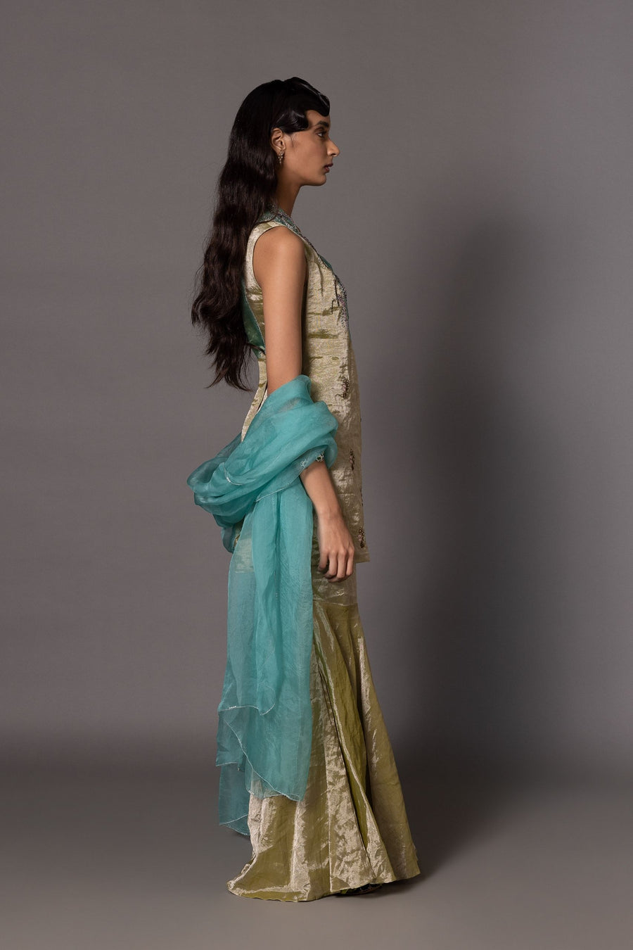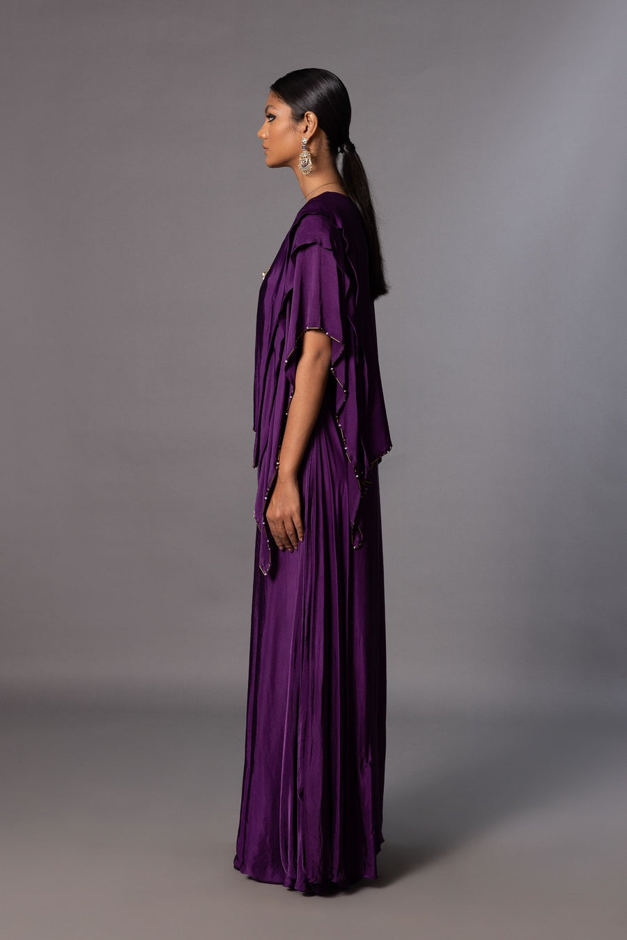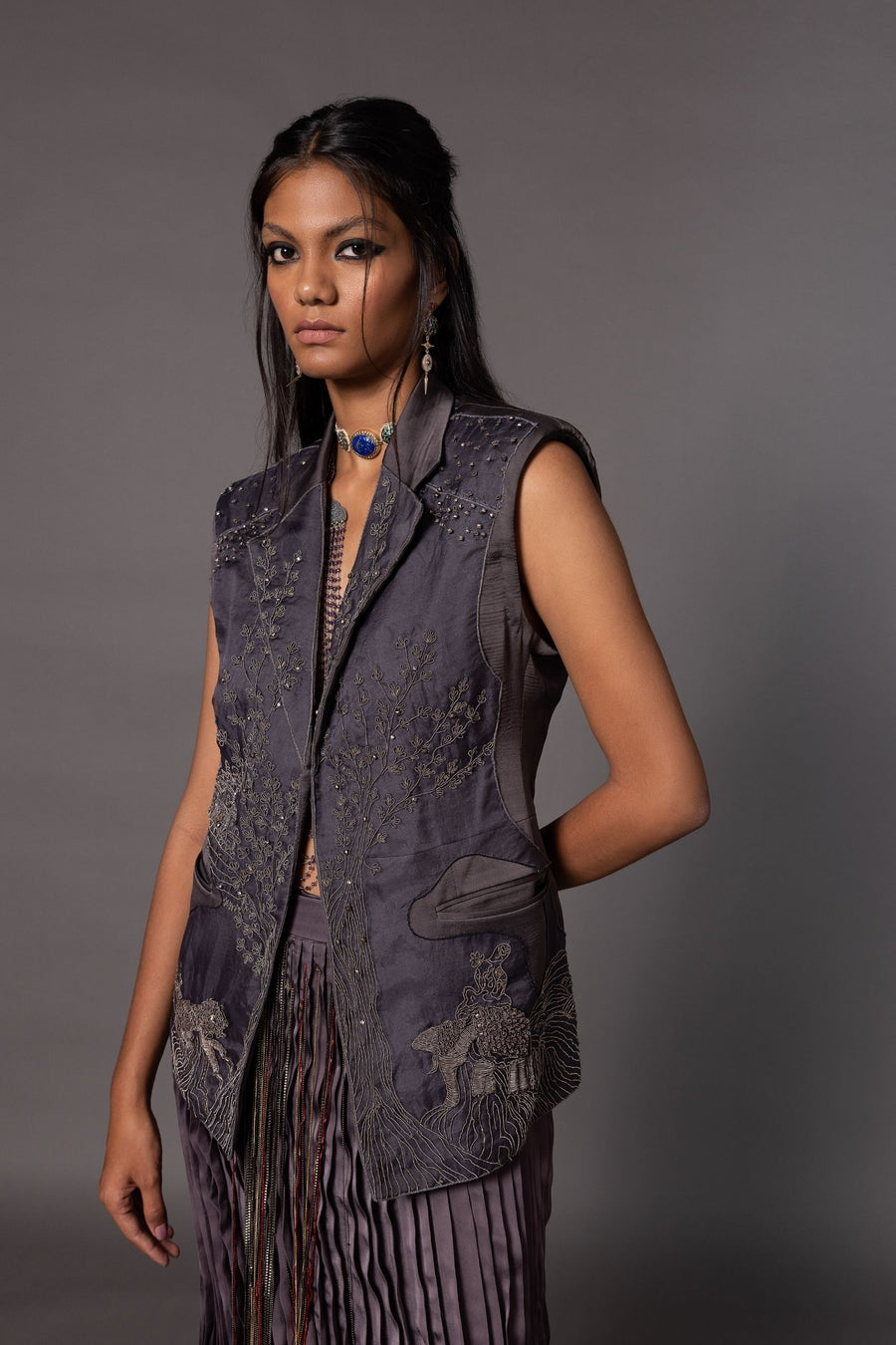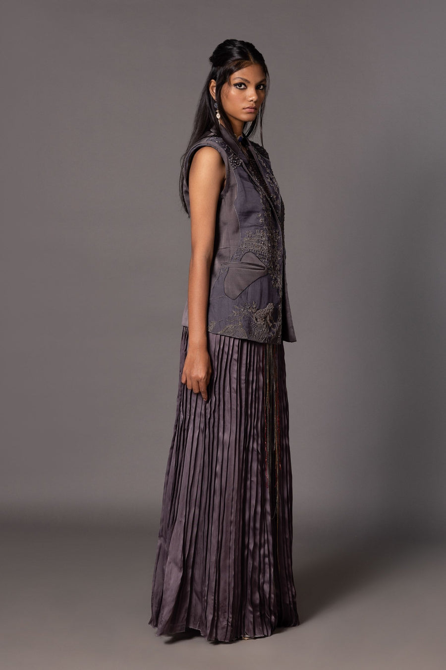 Shikhar Baugh Charcoal Jacket And Gucha Pleated Skirt Set