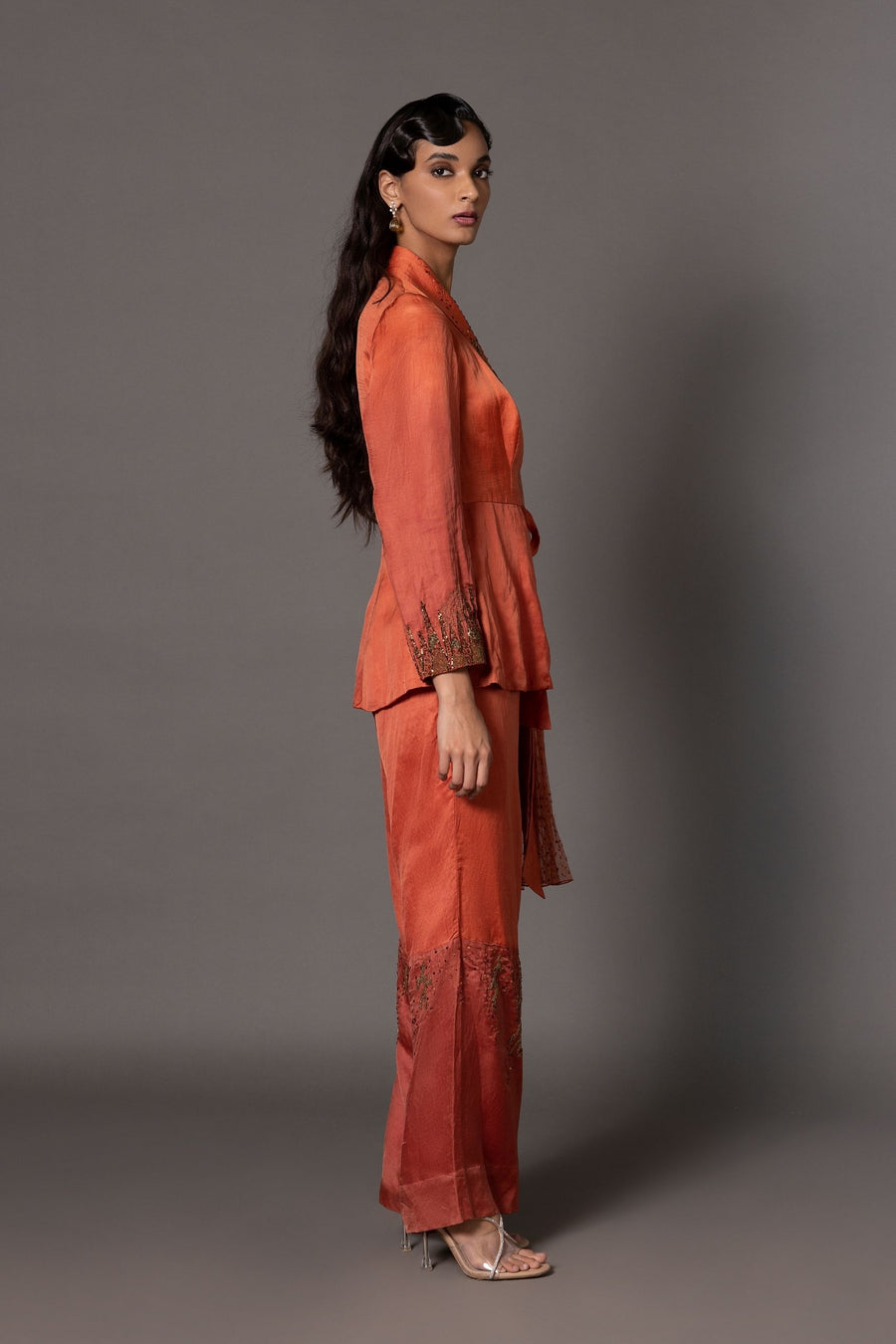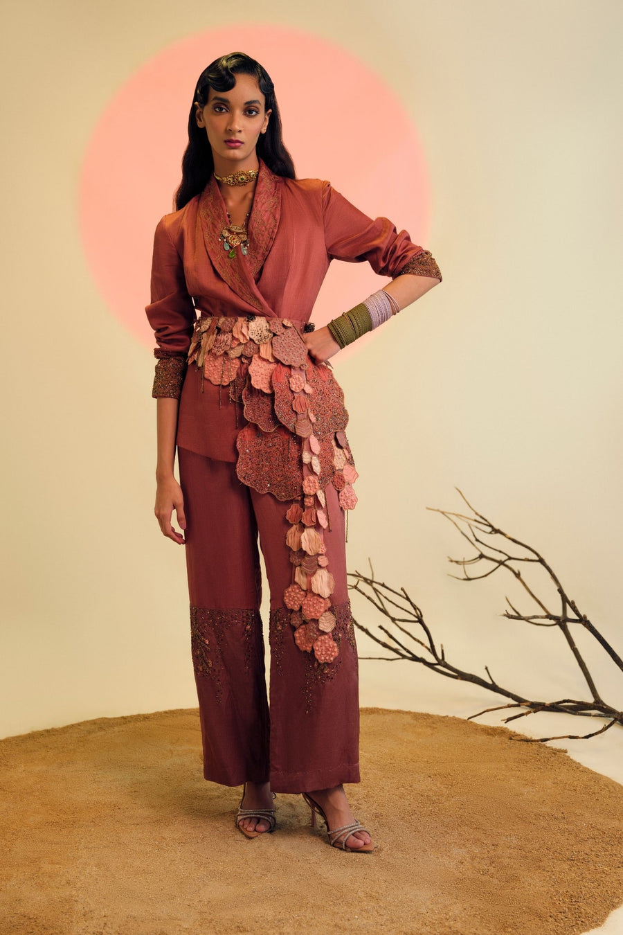 Desert Rose Terracotta Jacket And Beaded Trousers Set