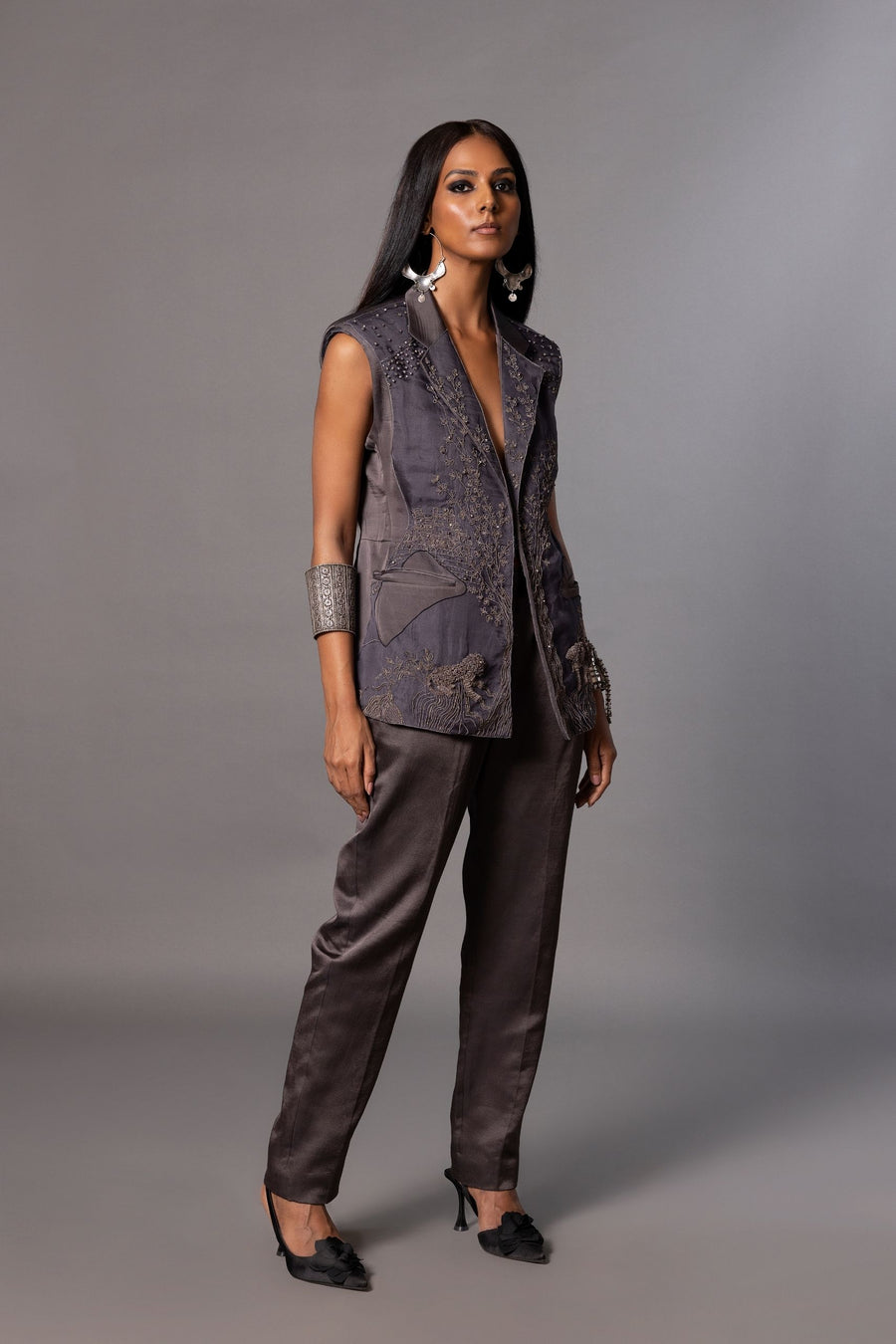 Shikhar Baugh Charcoal Jacket And Trousers Set