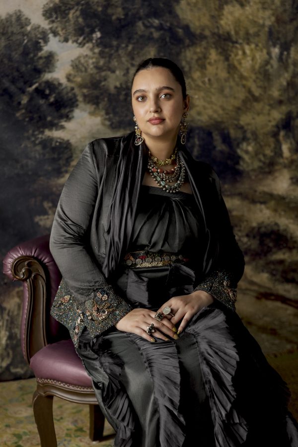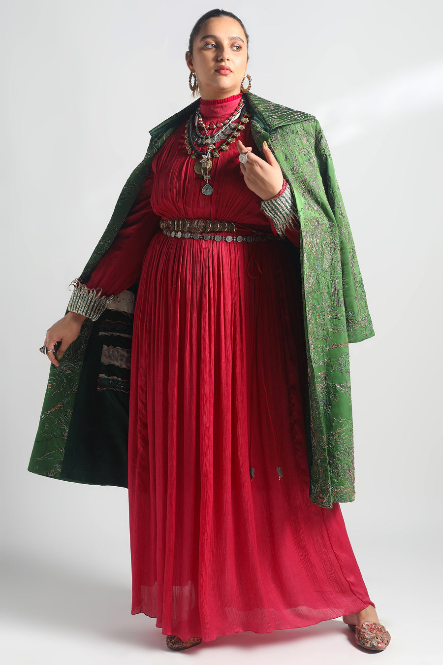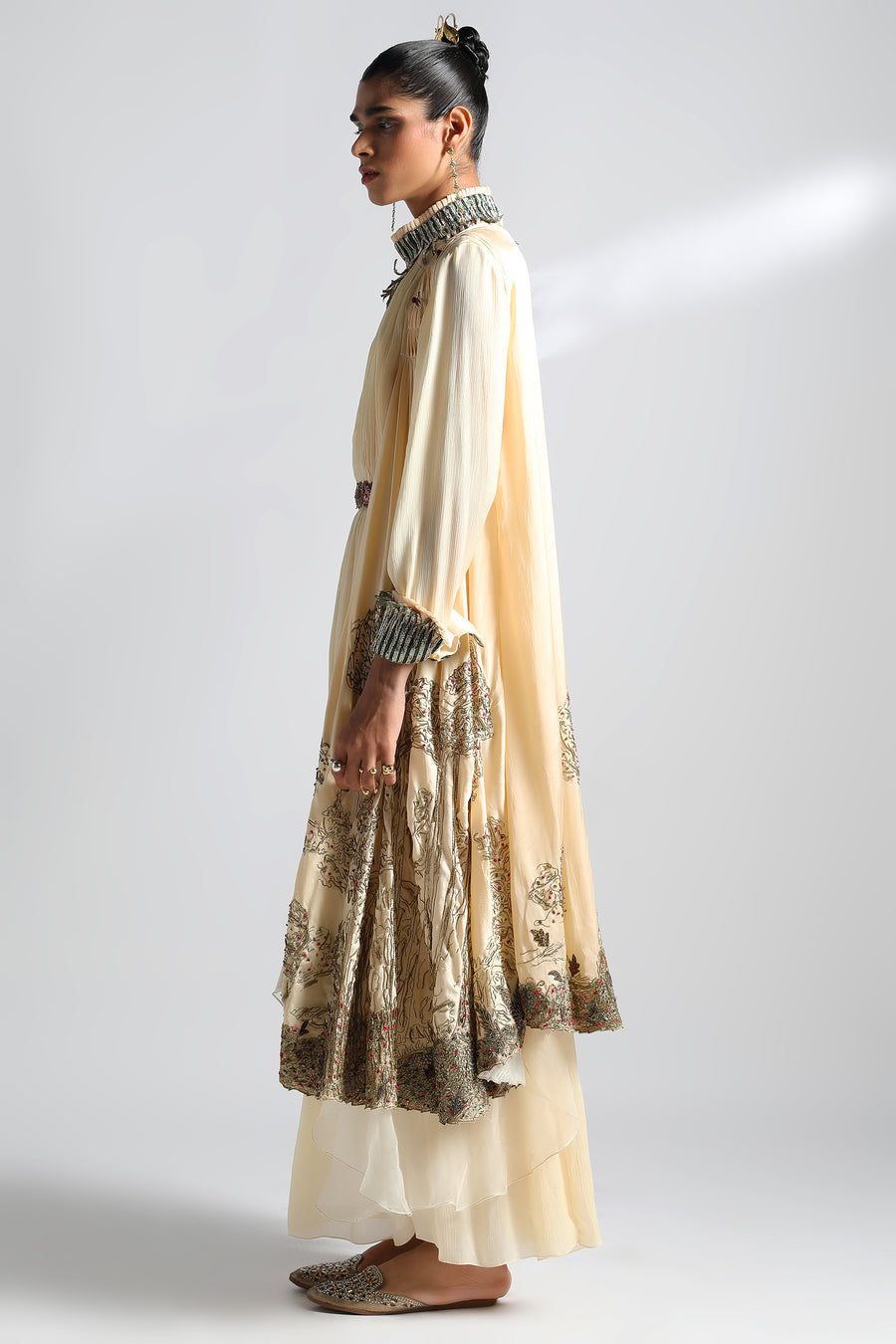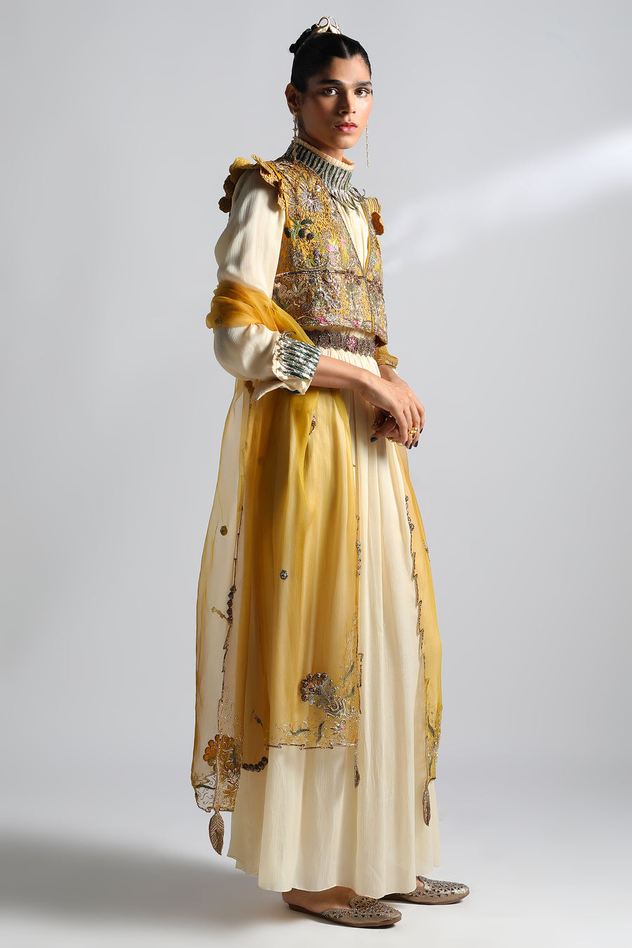Rumi Gown with Cropped Jacket, Paro Dupatta and Belt