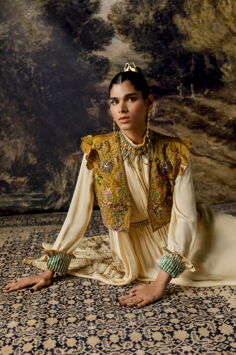 Carpet Jacket with Ruching Top And Midnight Skirt