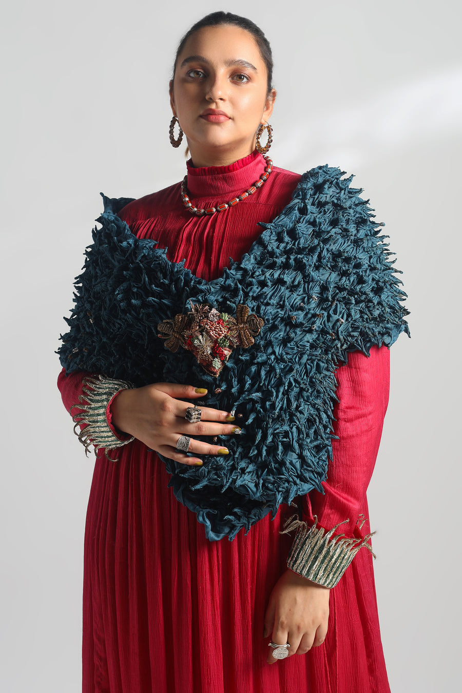 Kina Balu Draped Collar Jacket and Frill Gown